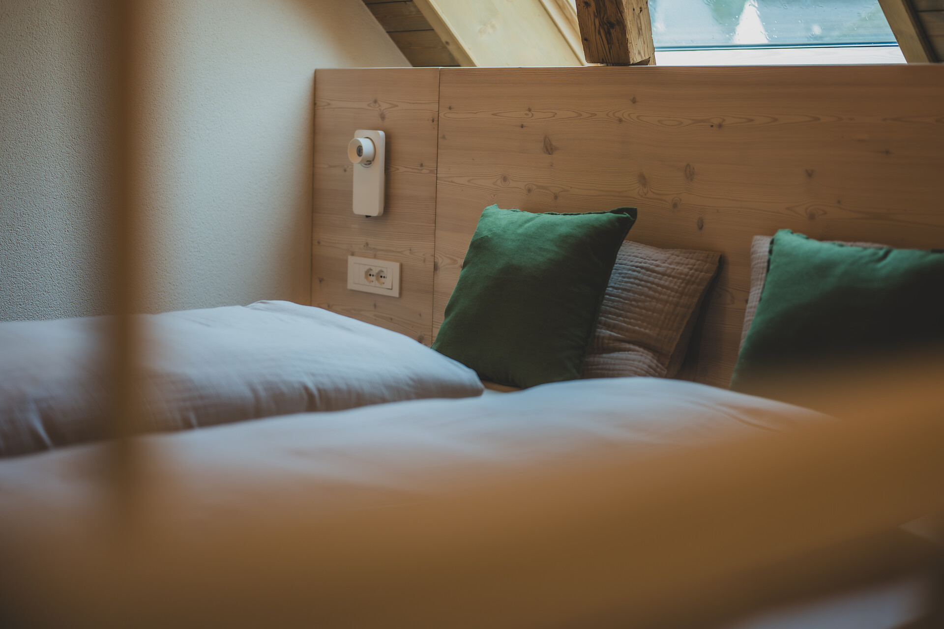 Ideale per le famiglie o per i nonni con bambini un po' più grandi, letto matrimoniale con parete divisoria; letto nell'angolo per massimo due bambini; una zona bagno a vista e due enormi lucernari panoramici per guardare le stelle.