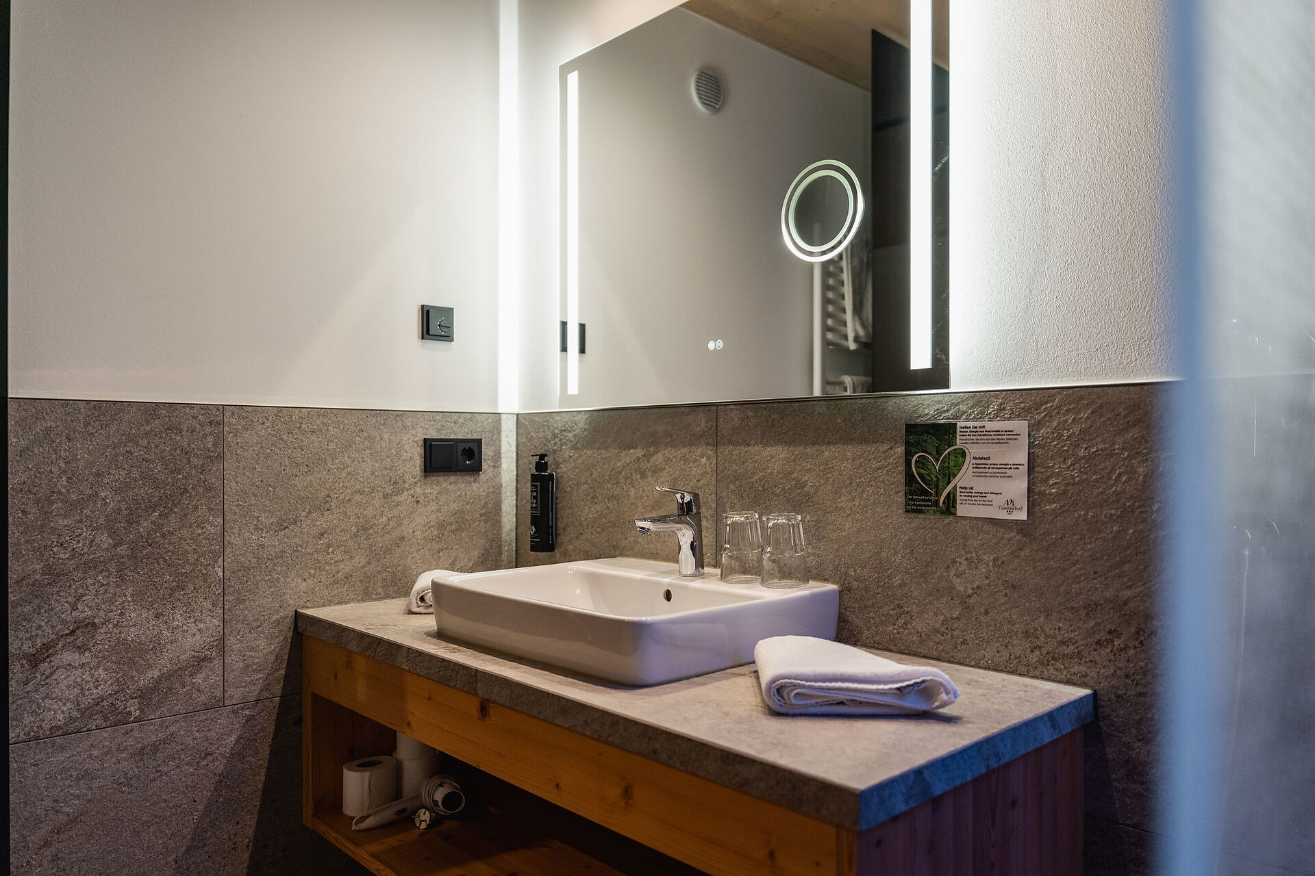 Le nostre camere Alpen Plus da ca. 22m² hanno un balcone lato sud e sono dotate di doccia/WC (alcune anche con bidet), TV, cassaforte, minibar, fon, scrivania, pavimento in legno e WIFI gratuito.