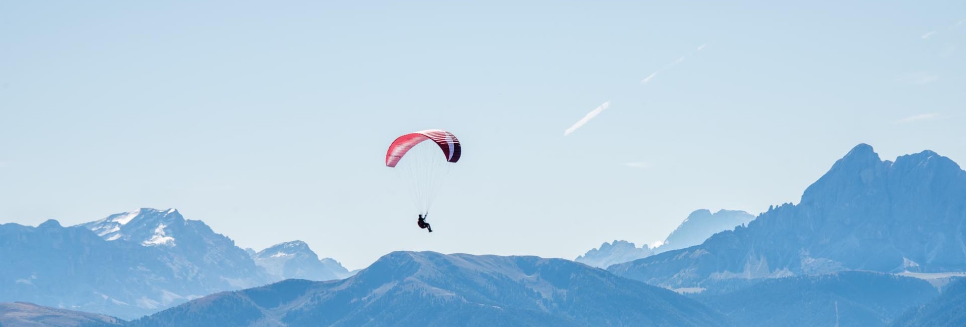 Dolomiti offrono una cornice incantevole per praticare parapendio: mentre l’Alto Adige si fa piccolo sotto i vostri piedi, il cuore e la mente ritrovano le giuste dimensioni.