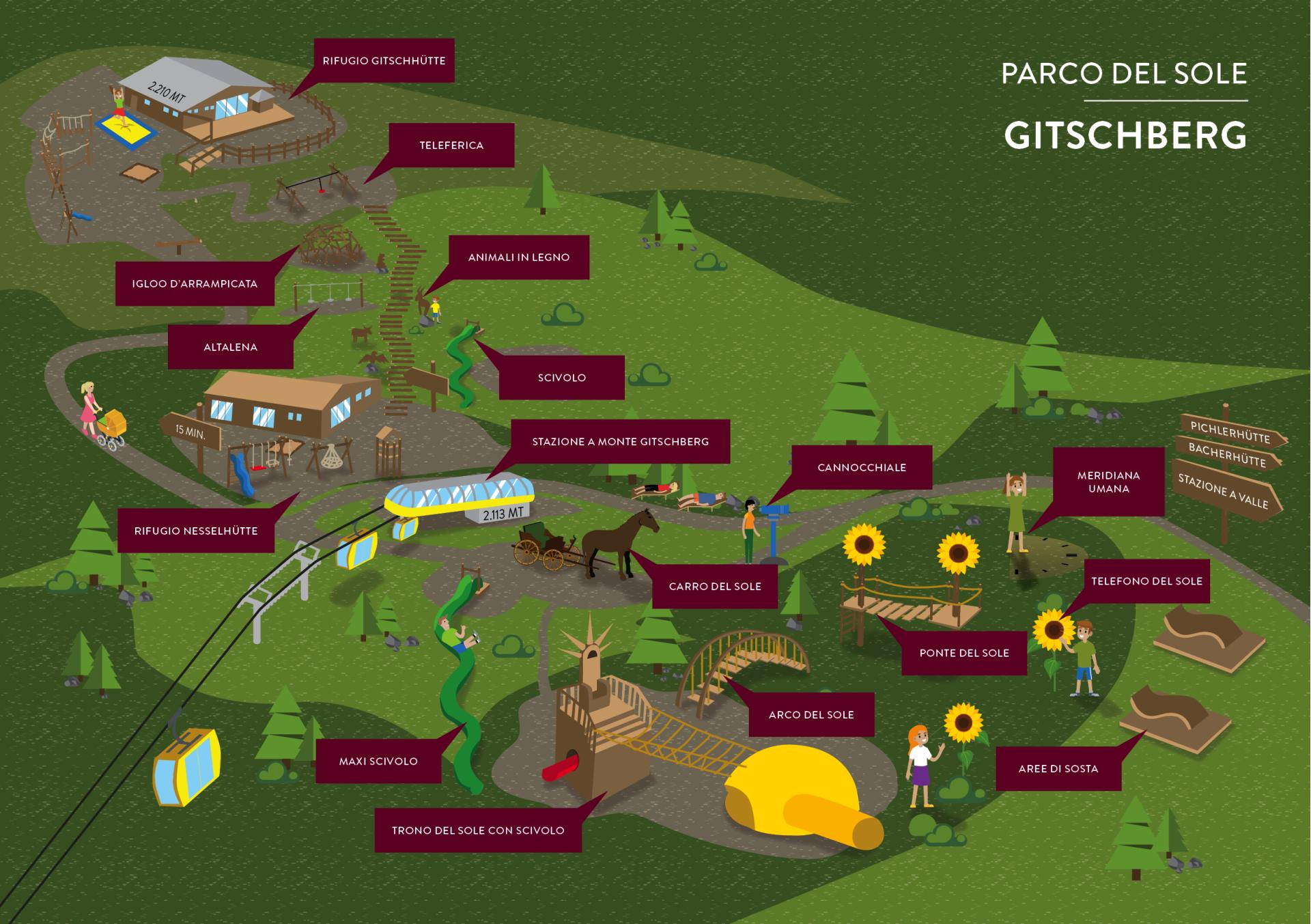 Arrivo: Rifugio Gitschhütte con ampio parco giochi e trampolino gigante