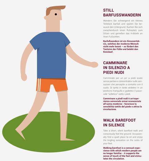 percezione del terreno, diventando consapevoli di asperità, fili d’erba e ciottoli a contatto con la pelle. Questo aiuta a stimolare le piante dei piedi e con esse la